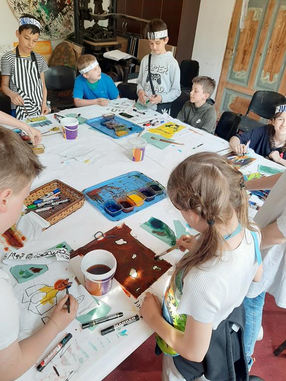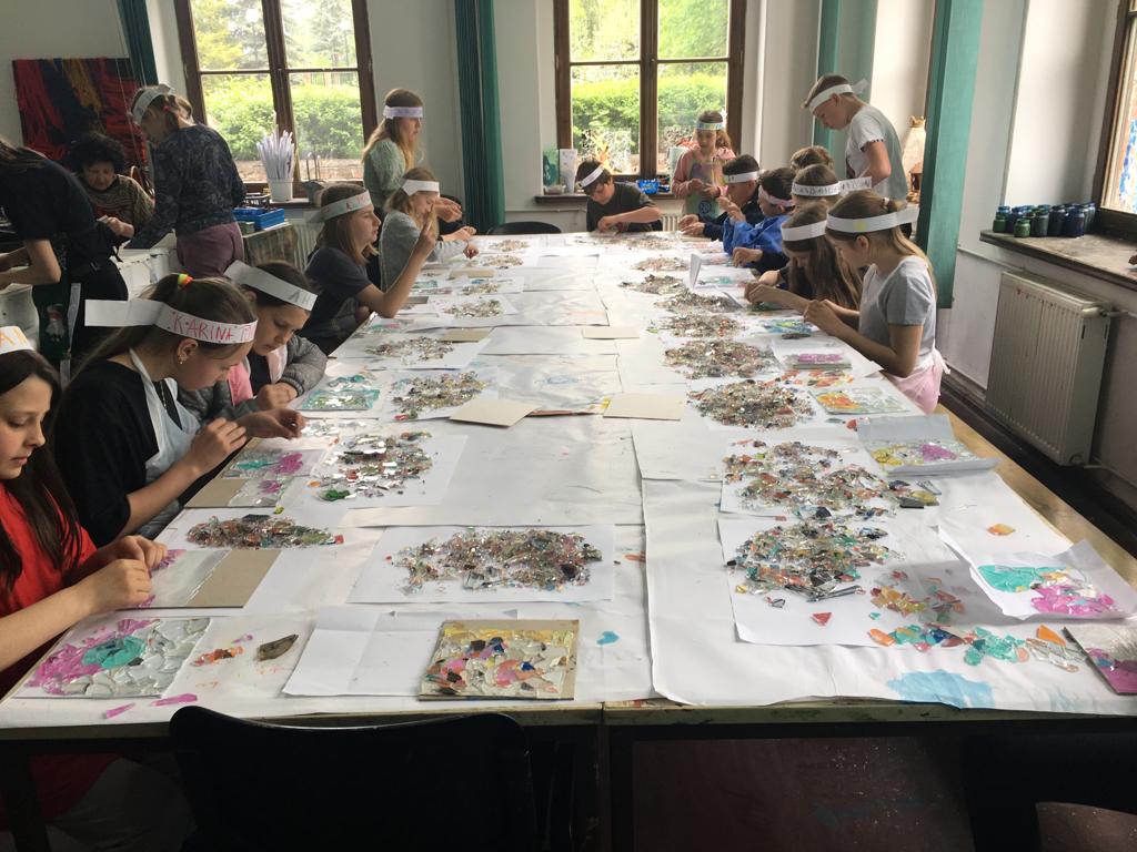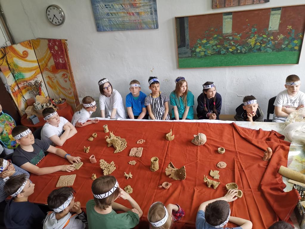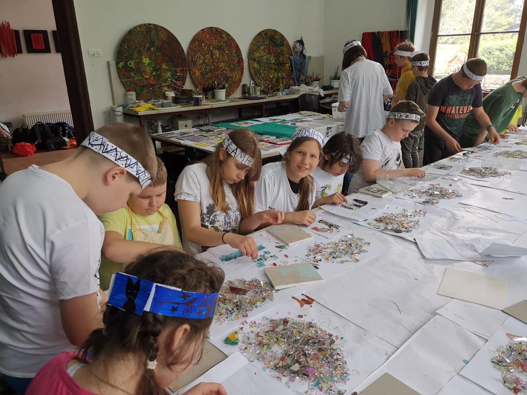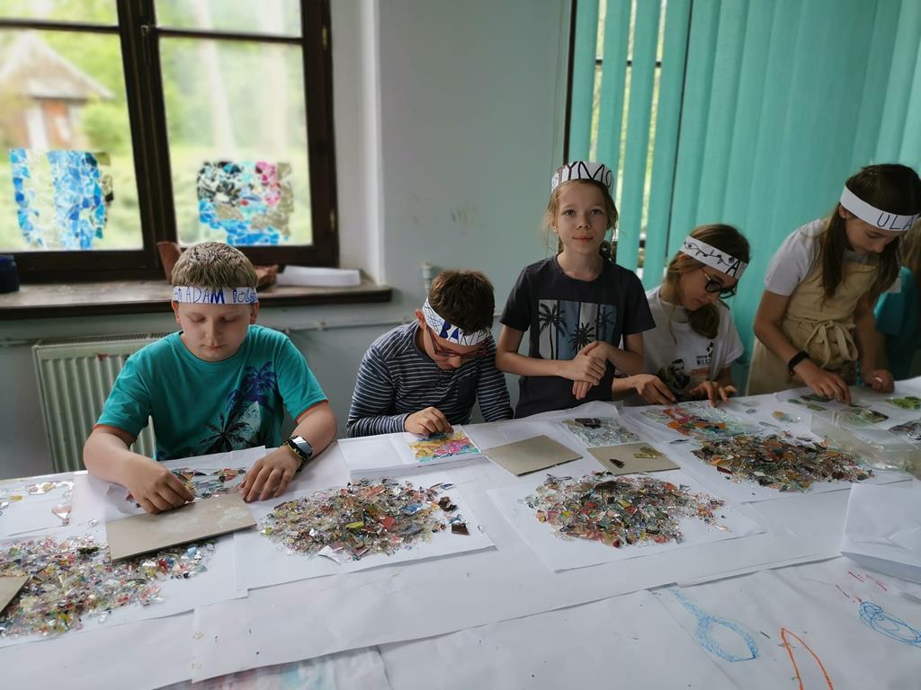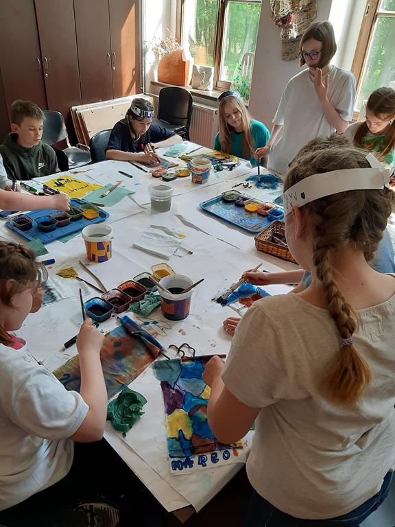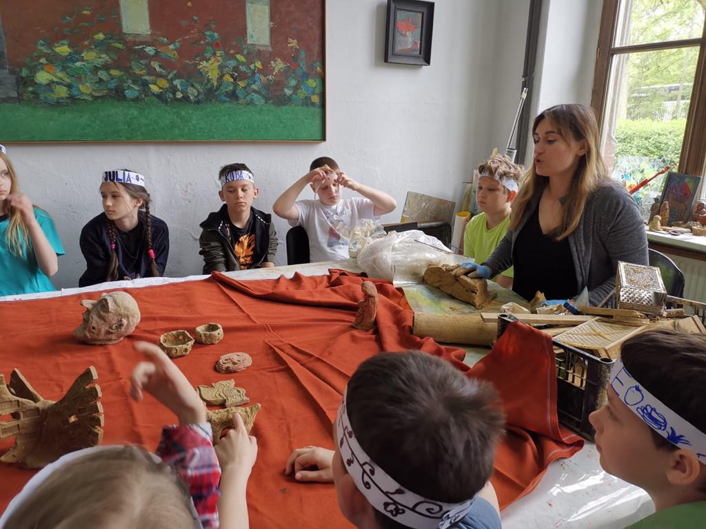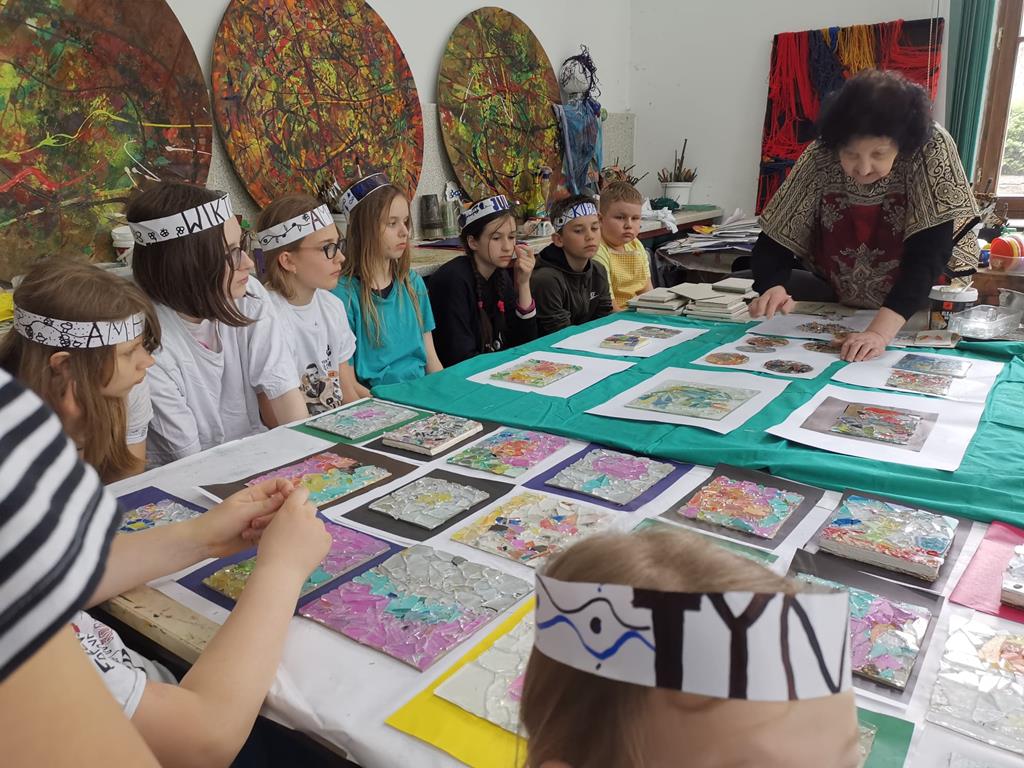 W maju klasy 5a i 5c wraz z wychowawcami uczestniczyły w warsztatach kreatywno-plastycznych. Młodzi artyści, w otoczeniu pięknej przyrody, tworzyli w atrakcyjnych technikach, takich jak: