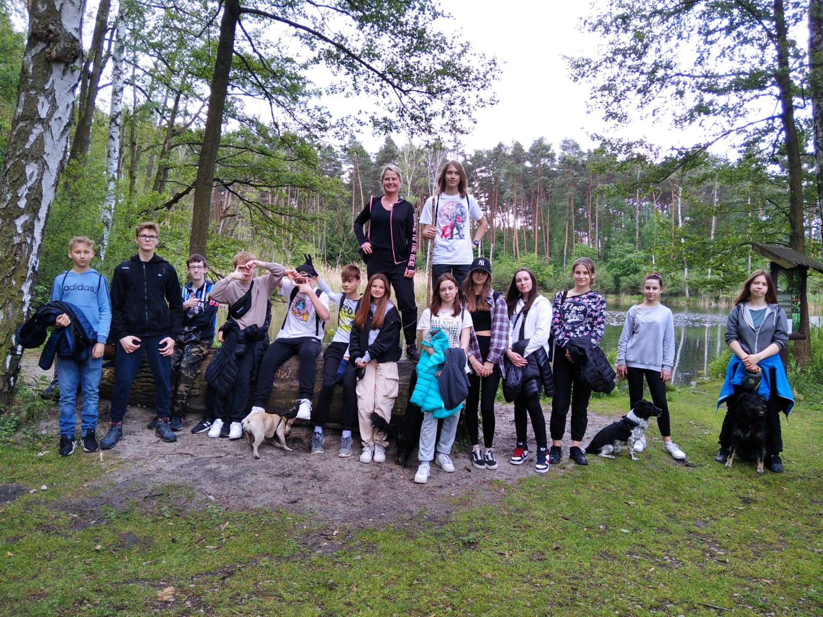 w pieszym rajdzie na Barbarę i w rejony Stawów Przysieckich. Świetnie było dotlenić umysły po egzaminach :) Pogoda nam dopisała, a po drodze mieliśmy możliwość obserwować żeremia bobrów i ślady ich działalności w postaci zgryzów i zwalonych pni drzew. Na stawach pojawiły się też gęsi gęgawy z młodymi. Dodatkowych atrakcji dostarczayły nam 4 psiaki, które zabraliśmy na wyprawę :)